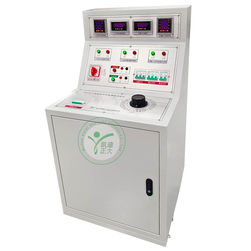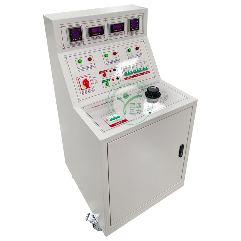 KDGK-II 高低压开关柜通电试验台用于高低压开关柜生产厂家对所生产的高低压开关柜进行出厂前的各项通电试验。它能提供各种交、直流电源,便于对开关柜的检测,提高工作效率。