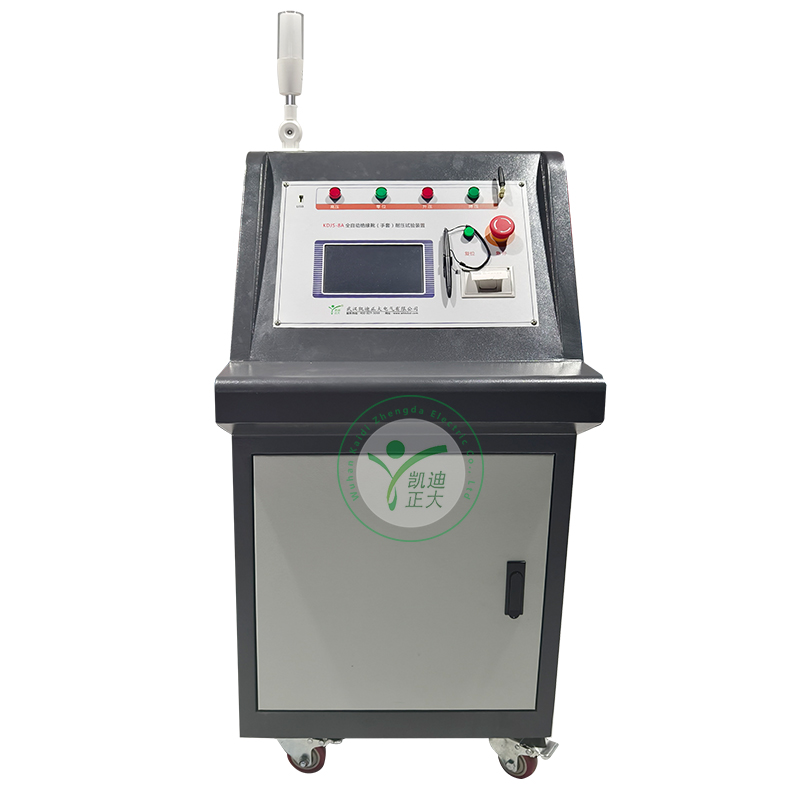 KDJS-8A 绝缘杆耐压试验装置是按照国家电力公司关于颁发《电力安全工器具预防性试验规程》(试行)的通知(国电发[2002]777号)的要求的基础上,联合高校武汉理工学院研制生产,并获得武汉市政府科技创新基金的资金支持。本产品各项指标均符合国标的要求。可以按《电力安全工器具预防性试验规程》要求对绝缘鞋、绝缘手套等安全工器具进行智能化绝缘耐压试验,绝缘靴及绝缘手套耐试验周期为半年,试验过程中不允许击穿,同时绝缘靴绝缘绝缘手套泄漏电流不大于限定值;产品适用于所有与电力相关行业。