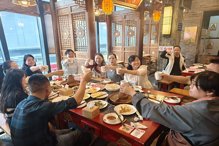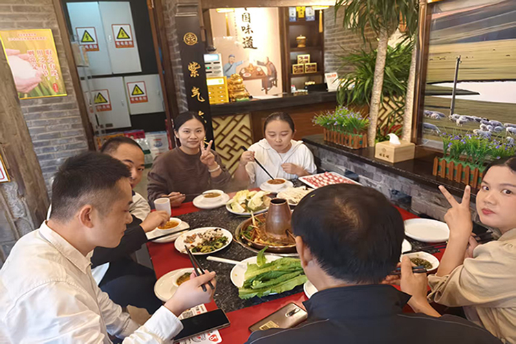 鲜嫩的羊肉、丰富的配菜陆续上桌,大家举箸畅谈,欢声笑语与锅底的沸腾声交织。平日里在不同岗位忙碌的同事们,此刻围坐一桌,卸下了工作的紧张,交流着生活中的趣事,畅谈着对未来的展望。公司领导们也融入其中,亲切地与每一桌的员工交流,向大家致以节日的问候,并感谢大家近期的辛勤努力。筷子起落间,不仅是美味的传递,更是情感的升温与团队的融合。这场羊肉火锅宴,仿佛一个温馨的大家庭聚会,暖了胃,更暖了心,将团队凝聚力在这升腾的热气中推向新的高度。