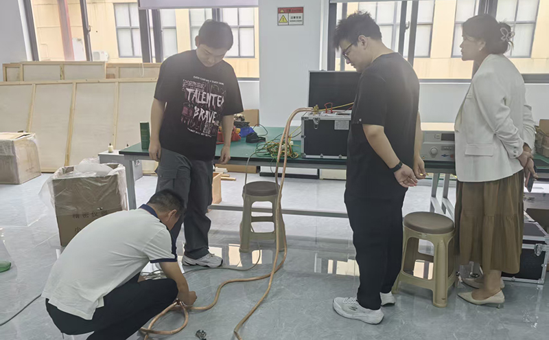 第二站:生产车间——见证制造匠心随后,技术人员陪同嘉宾走进生产车间。我们向来宾简要说明了高压谐振电抗器、超高压耐压测试仪等产品的组装与调试。希望通过呈现有序的生产现场和严谨的作业流程,让代表团感受到凯迪对产品品质的切实追求与保障能力。