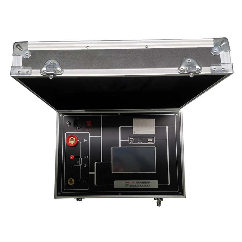 KDHL-600A 回路电阻测试仪,以高速微控制器为核心,采用电源控制技术,实现可程控大电流恒流输出、动态测量的功能。具有精度高,测量范围宽,数据稳定,重复性好,抗干扰能力强,保护功能完善,速度快等特点。可用于测量高压开关主接点电阻、大电流导电回路电阻、变电站母线电阻、电力线接触点电阻等大电流导电体电阻测量,该仪器应体积小、重量轻、便于携带。