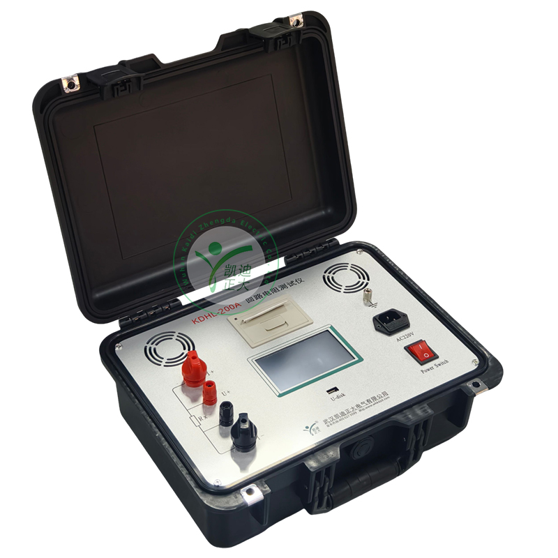 KDHL-200A 操作面板采用人体工学设计,符合操作习惯,采用高频开关电源和数字电路技术,适用于开关控制设备回路电阻的测量。测试电流采用国家标准推荐的直流100A。