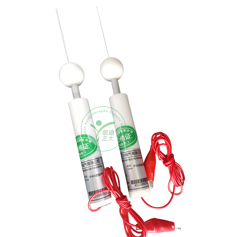 IP4X 试验探棒:用于防止手持金属丝触及的防护检验,符合IEC61032 图4 试具D、IEC60529 IP3、GB4208 IP4、GB/T16842 试具D、GB8898、IEC60065、IEC60598、GB7000等标准要求。