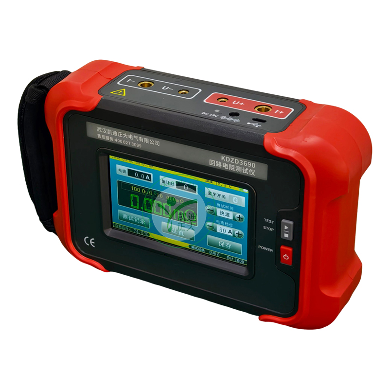 KDZD3690 手持式回路电阻测试仪又名接触电阻测试仪,仪表采用微处理机技术,精密四线法测试,准确可靠。用于高压开关、断路器、继电器金属触点等微小电阻的测量。仪表体积小重量轻,配有大容量电锂电池组,一次充电可进行500次测量。特别适合在户外工地使用。广泛应用于是发电、输电、变电、建筑质检站、监理公司、建筑施工单位、防雷公司、电力部门、船舶机车厂等工矿企业。