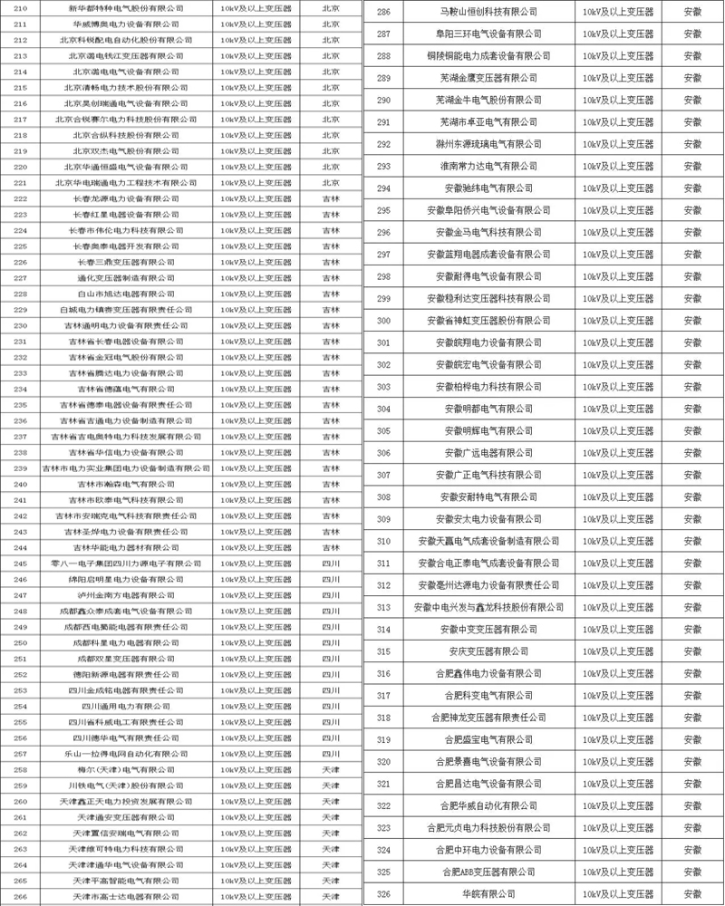 附各省市电力公司符合此次核实标准的变压器企业名单: