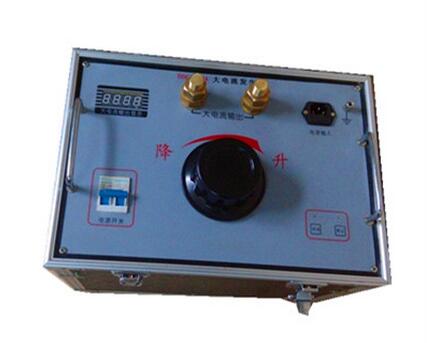 1.按照调试要求,将升流器及被试品连接好,并接好电源。接电源时应注意如果铭牌上标注,是单相220V只需在输入端接入一根零线、一根火线,如果铭牌上标注的是二相380V时应将电源的两根火线同时接入升流器的输入端。应根据容量选择进线电源的截面。大电流输出至被试品一般采用软铜线或铜排连结,电流密度大致取5~6A/平方毫米,且长度不宜过长。接头须紧密可靠,以减小接触电阻。