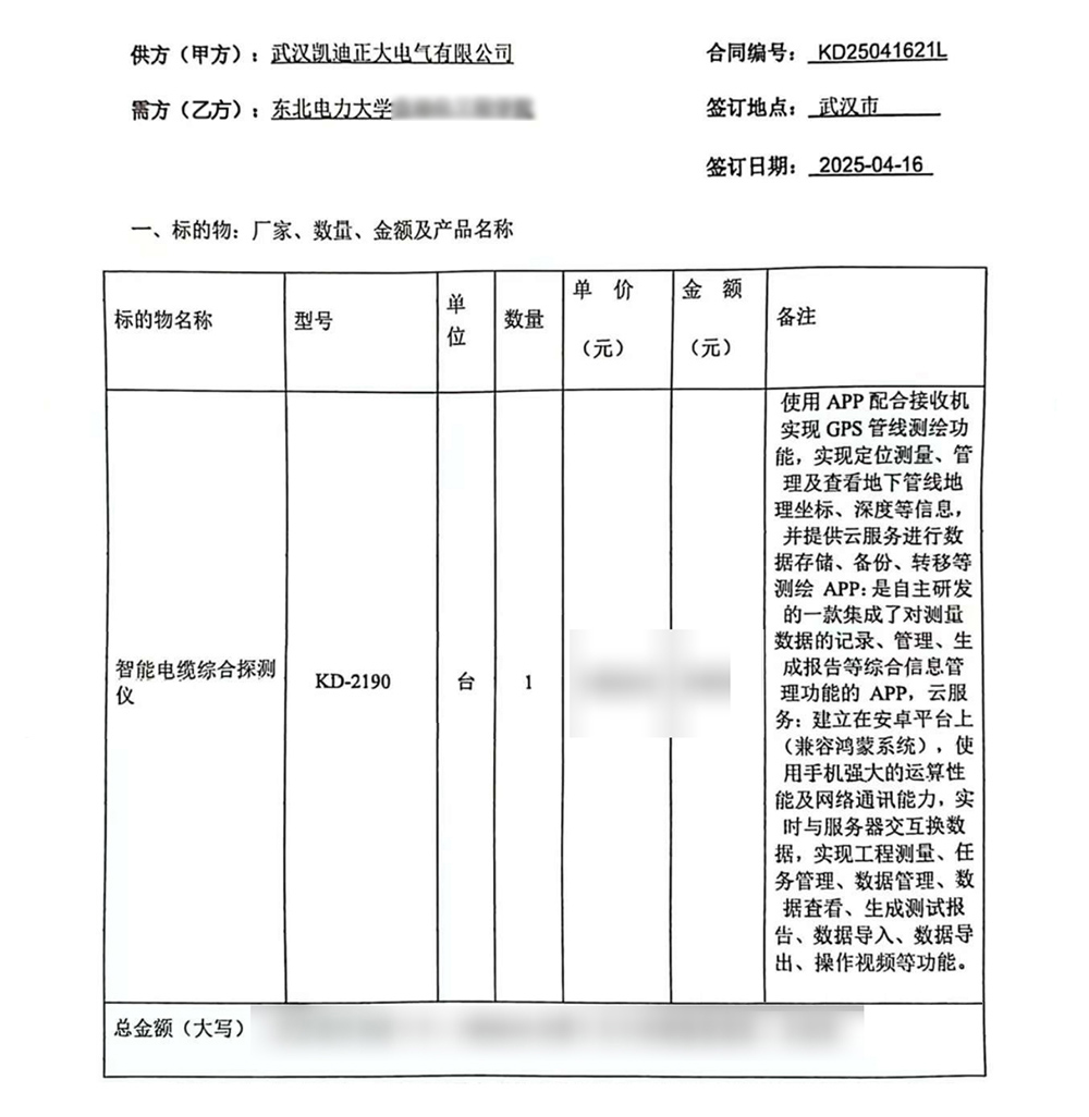 在众多供应商中,东北电力大学最终选择了武汉凯迪正大电气。这一选择背后,是对武汉凯迪正大电气多年来在电力行业积累的技术实力的认可,更是对其产品在实际应用中所展现出的可靠性、效率的信赖。武汉凯迪正大电气以其专业的服务团队、完善的售后保障以及KD-2190智能电缆综合探测仪的性能,赢得了东北电力大学的青睐与信任。