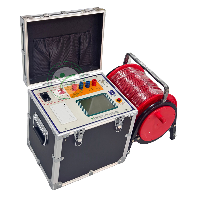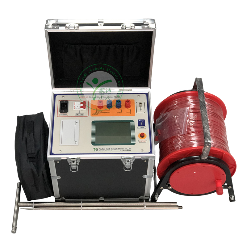 KDW-5A 接地网阻抗测试仪是一种高精度测试仪器,广泛应用于变电站等领域,用于测试接地电阻及相关参数。该仪器具有体积小、重量轻、携带方便、抗干扰能力强、精度高等特点。仪器采用一体化结构,内置变频电源模块,输出电源频率连续可调,频率可更改为 45Hz 或 55Hz,内置高速处理器核心,并采用高端数字滤波技术,从而有效避免了工频电场对测试的干扰,从根本上解决了强电场干扰下准确测量的难题。大量现场测试和用户使用情况表明,在变电站恶劣的电磁环境下进行接地网测试时,该接地网接地电阻测试仪的测量数据准确、稳定、重复性好,是测量大中型接地网特性参数的常用仪器。
