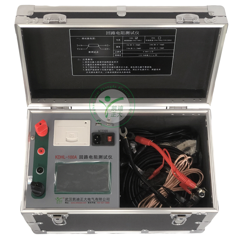 回路电阻测试仪是采用数字电路技术和开关电源技术相结合设计而成。它适用于开关控制设备的接触电阻、回路电阻的测量。其测试电流采用国家标准推荐的直流100A。可在电流100A的情况下直接测得回路电阻和接触电阻,并用数字显示出来。该仪器测量准确、性能稳定,适合电力、供电部门现场高压开关维修和高压开关厂回路电阻测试的要求