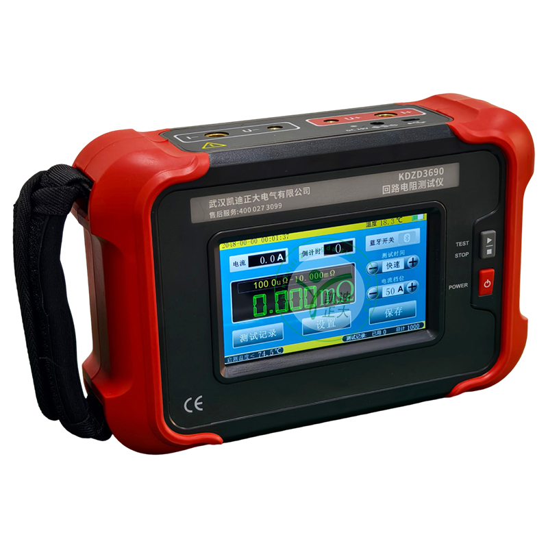 KDZD3690 手持式回路电阻测试仪又名接触电阻测试仪,仪表采用微处理机技术,精密四线法测试,准确可靠。用于高压开关、断路器、继电器金属触点等微小电阻的测量。仪表体积小重量轻,配有大容量电锂电池组,一次充电可进行500次测量。特别适合在户外工地使用。广泛应用于是发电、输电、变电、建筑质检站、监理公司、建筑施工单位、防雷公司、电力部门、船舶机车厂等工矿企业。