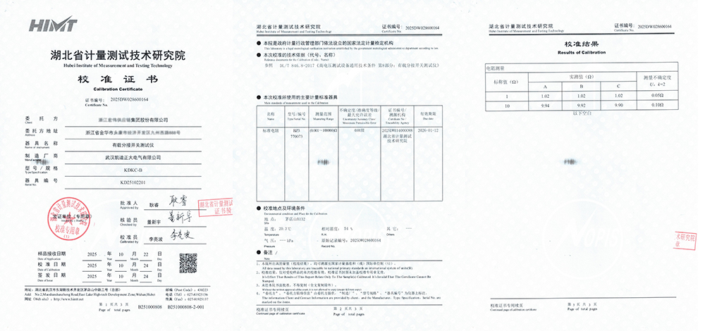 本次校准不仅是对两款仪器性能的全面检验,更是对武汉凯迪正大电气有限公司产品质量控制体系的有力印证,也为用户提供了值得信赖的检测工具。通过国家法定计量机构的权威认证,KDKC-B和KDRB-IV在准确性、稳定性和可靠性方面均达到了行业高标准。