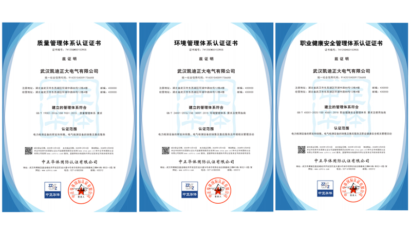 近日,凯迪正大电气在管理体系标准化建设方面成功获得《质量管理体系认证证书》、《环境管理体系认证证书》、《职业健康安全管理体系认证证书》以及《商品售后服务认证证书》。这四项权威认证的获得,标志着公司在产品与服务质量、环境责任履行、职业健康安全以及售后服务水平等方面,均已建立起系统化、标准化、国际化的管理体系,综合运营与管理能力迈上新台阶。