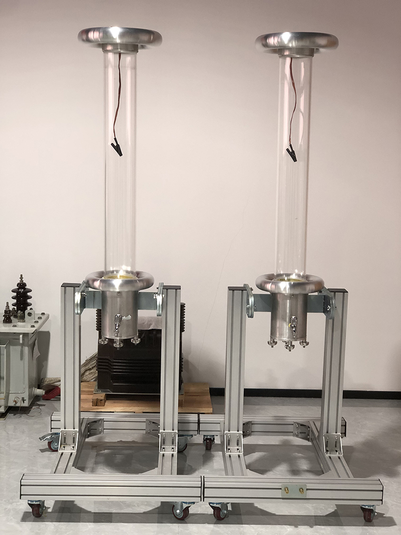 五、产品特点: 终端采用高性能透明绝缘管与专业高压防晕屏蔽罩设计,工频耐压高达120kV,冲击耐压达250kV,局放水平在0-100kV范围内小于2pC,确保试验数据准确可靠。设备整体为落地式结构,稳固且便于移动,适用于各类现场试验环境。