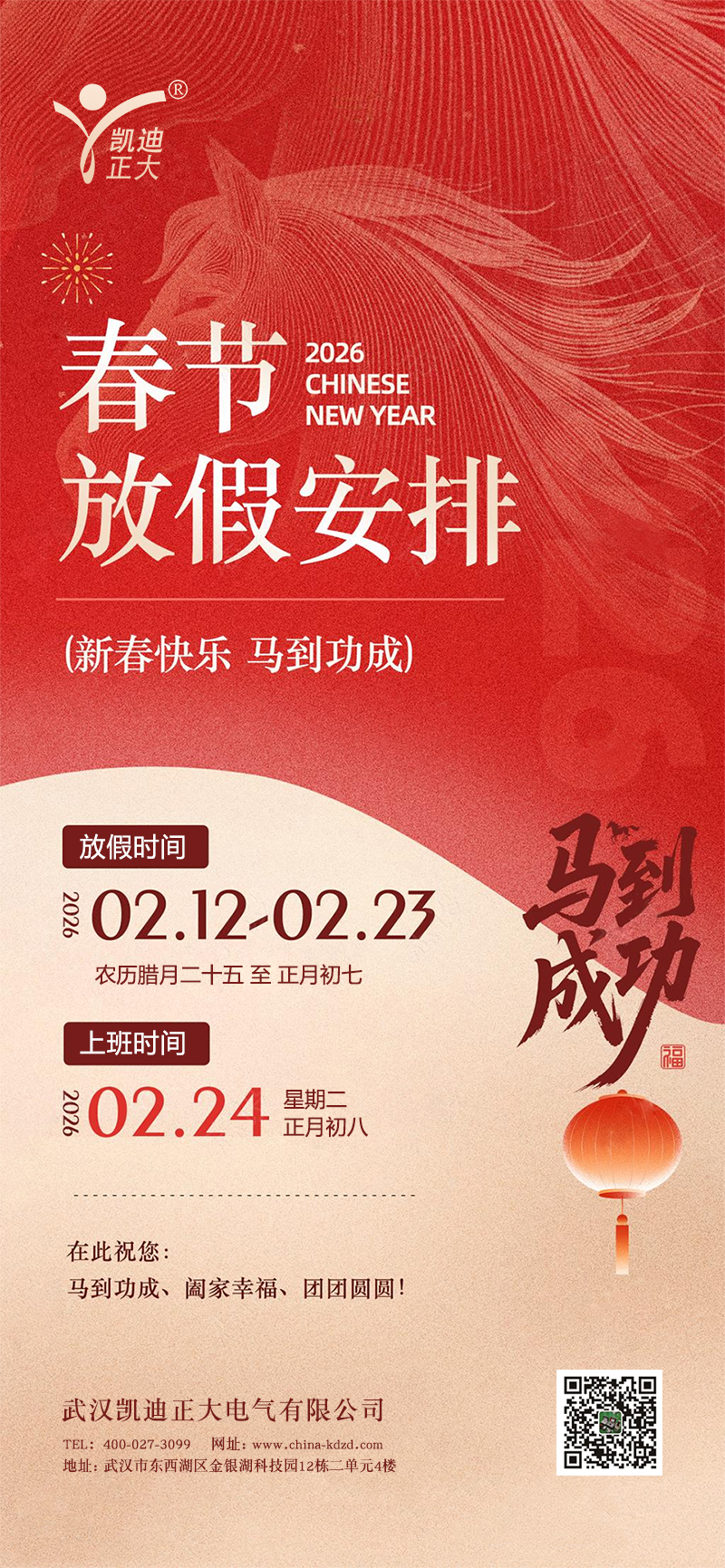 武汉凯迪正大2026年春节放假安排的通知