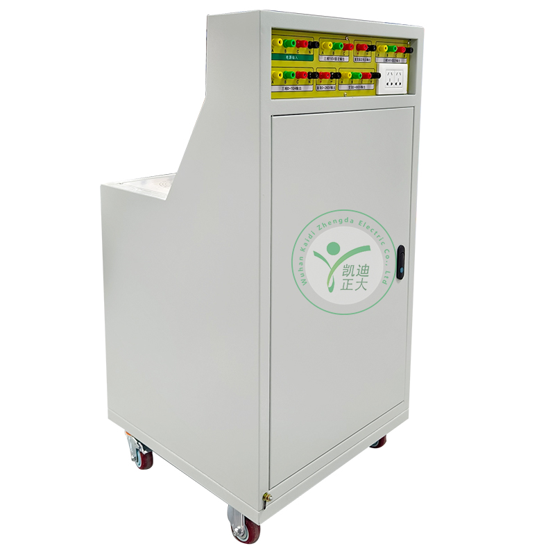 KDGK-II 高低压开关柜通电试验台用于高低压开关柜生产厂家对所生产的高低压开关柜进行出厂前的各项通电试验。它能提供各种交、直流电源,便于对开关柜的检测,提高工作效率。