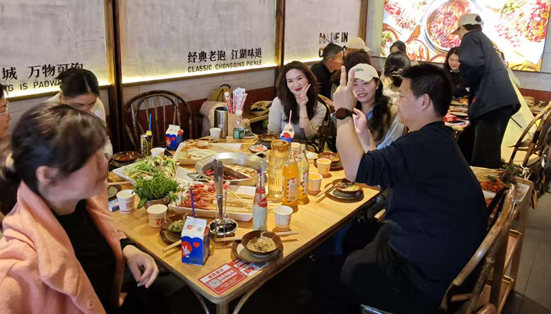 接近中午,阳光逐渐强烈,半天的体力劳动让大家都感到些许疲惫,但每个人的脸上都带着满足的笑容。团队一行转场至附近的火锅串串店,用一场热气腾腾的聚餐犒劳半日的辛劳。